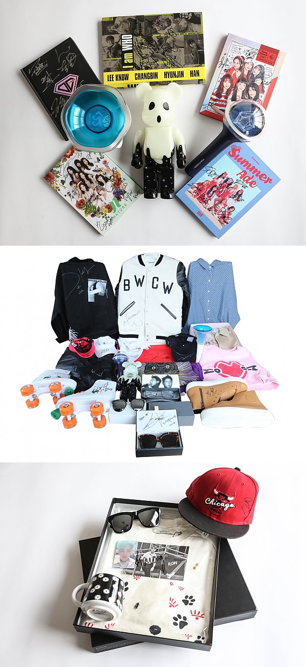또한 EXO, 레드벨벳, NCT, 세븐틴, 모모랜드, 뉴이스트, AOA, FT아일랜드, 신화, SF9, CLC, 더 보이즈, 여자친구, 펜타곤, BTOB, 빅플로 등 K-POP스타들까지 총 170여 명의 애장품을 기부했다.