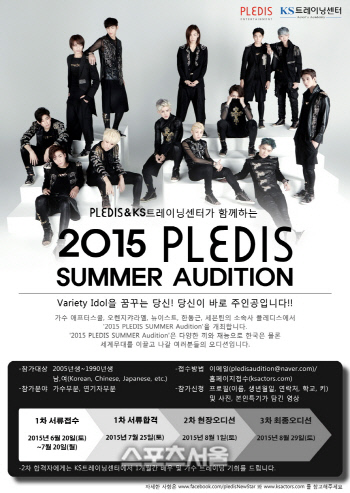 ‘2015 플레디스엔터테인먼트 썸머 오디션’에 관한 보다 자세한 사항은 플레디스엔터테인먼트 페이스북(www.facebook.com/pledisnewstar)과 KS트레이닝센터의 통합 오디션 사이트인 KS액터스 (www.ksactors.com)에서 확인할 수 있다.