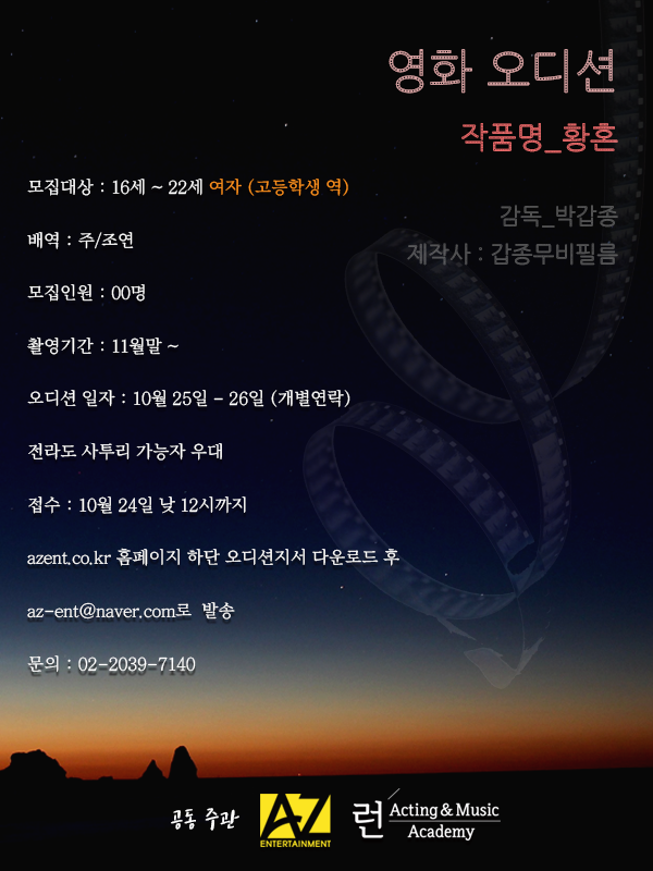 문의 : 02-2039-7140 , 런연기학원, www.azent.co.kr